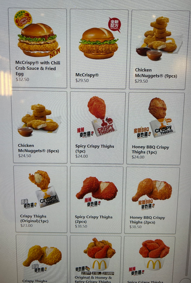 • マックチキン:HK$16.0(約325円