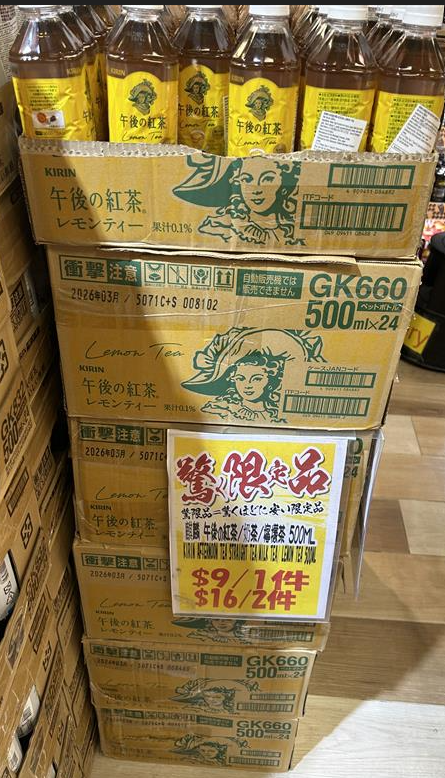 • 午後の紅茶レモン 500ml:HK$9/本(約¥183)HK$16/2本(約¥325)