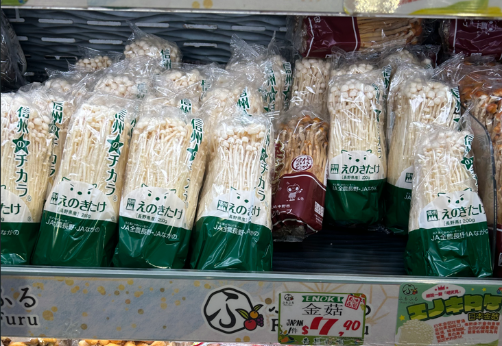 えのき、ピーマン、ゴーヤなど、日本の食卓前提の野菜が普通に並んでいます。ローカル市場や中資系スーパーでも野菜は買えますが、「サイズ・品質・調理想定」が日本とズレやすい。ドンキの野菜は**“考えずに和食が作れる”**という意味で価値が高い。