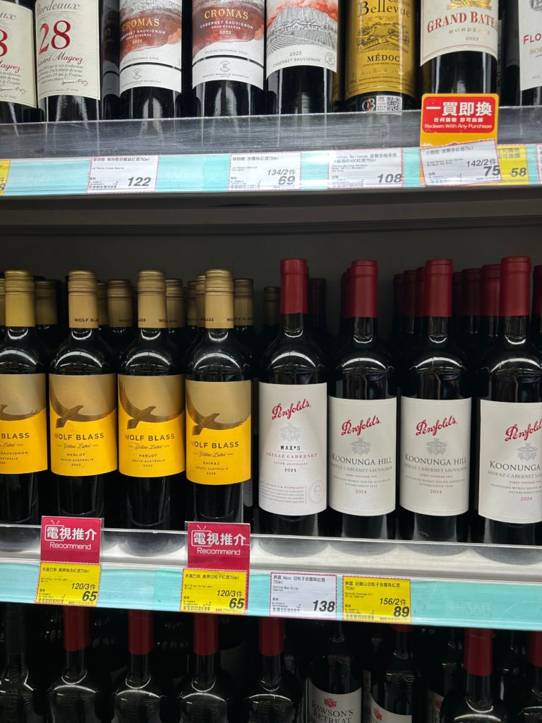 ワイン:HKD58〜138(約1,160〜2,760円)