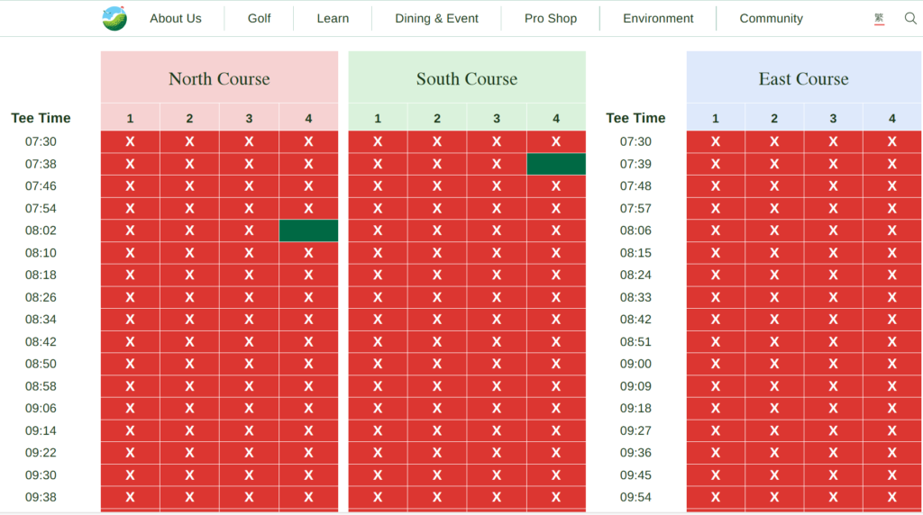 ハンディキャップが大きすぎると、予約できないコースがあります。