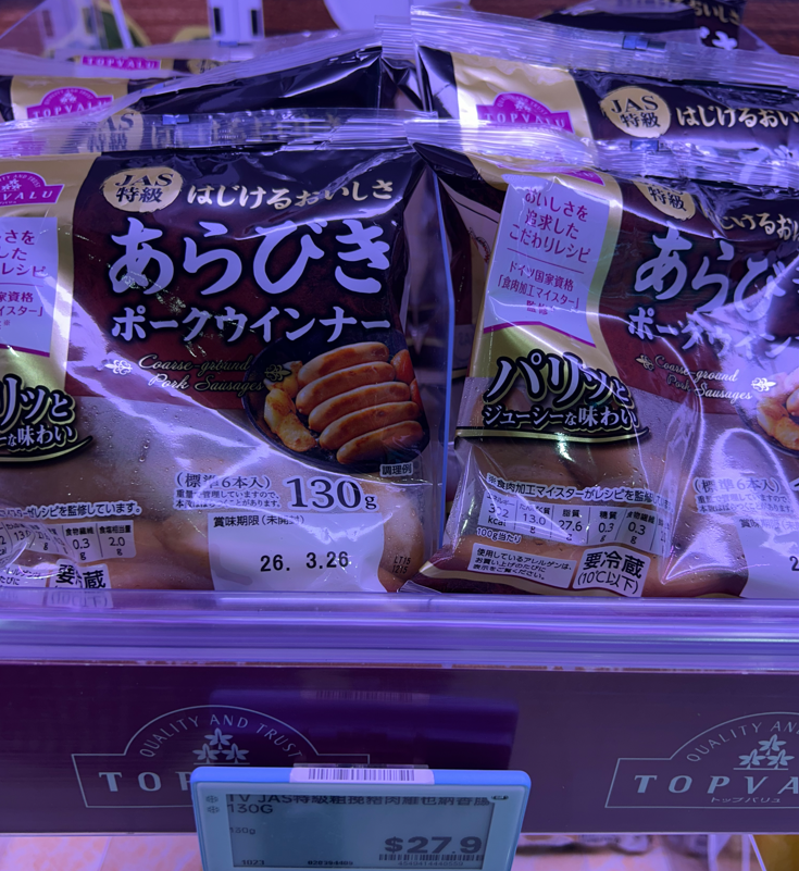 📸 あらびきソーセージ:HKD27.9(約567円)