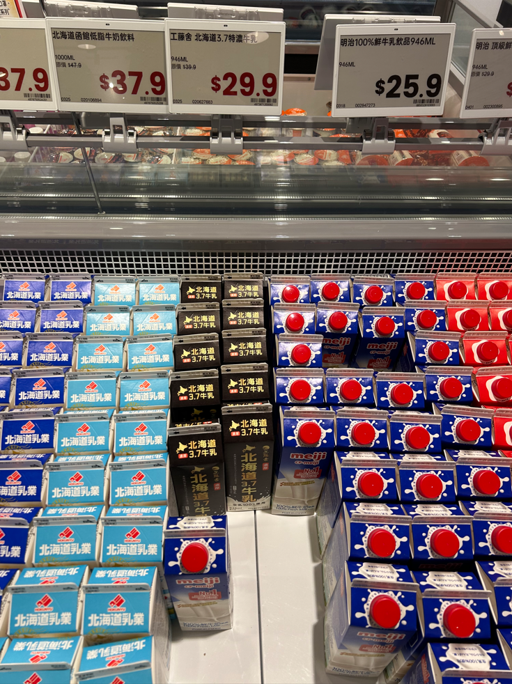 📸 牛乳:HKD25〜38(約508〜772円)