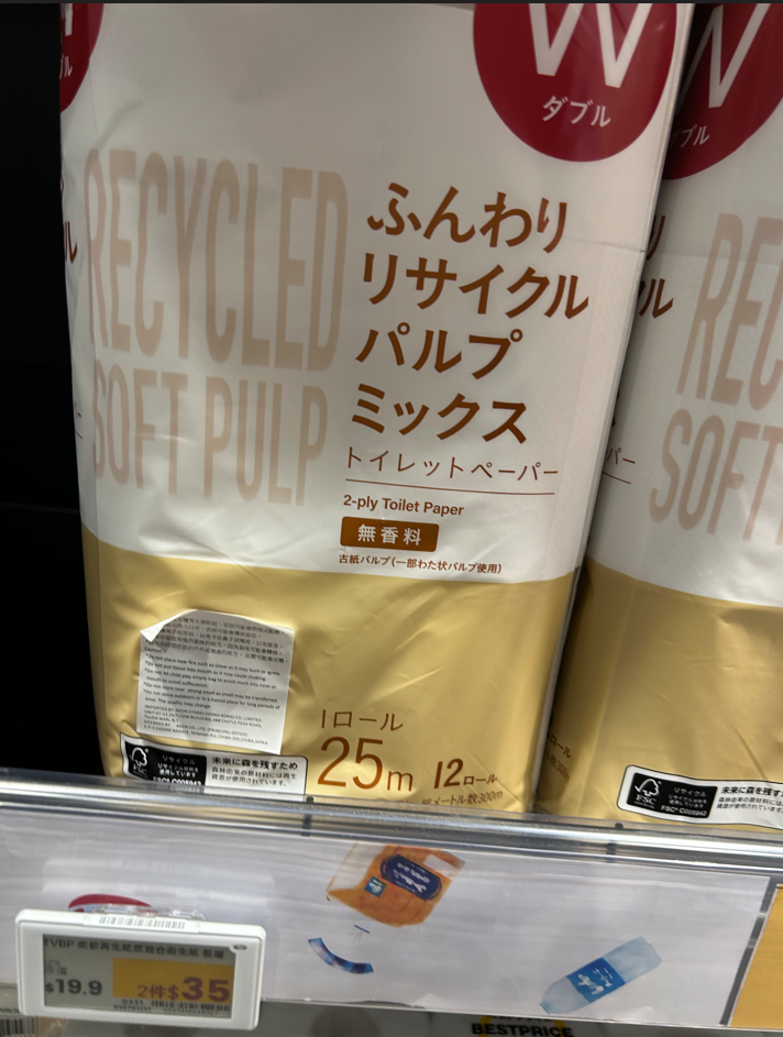 📸 トイレットペーパー:HKD19.9(約404円)